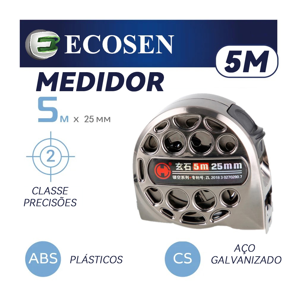 [Vendas Diretas De Fábrica] Trena Métrica 3/5/7 metros Profissional Emborrachada com Trava Fita de Aço Ecosen