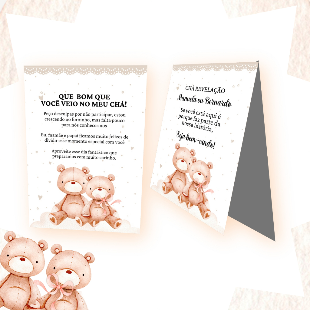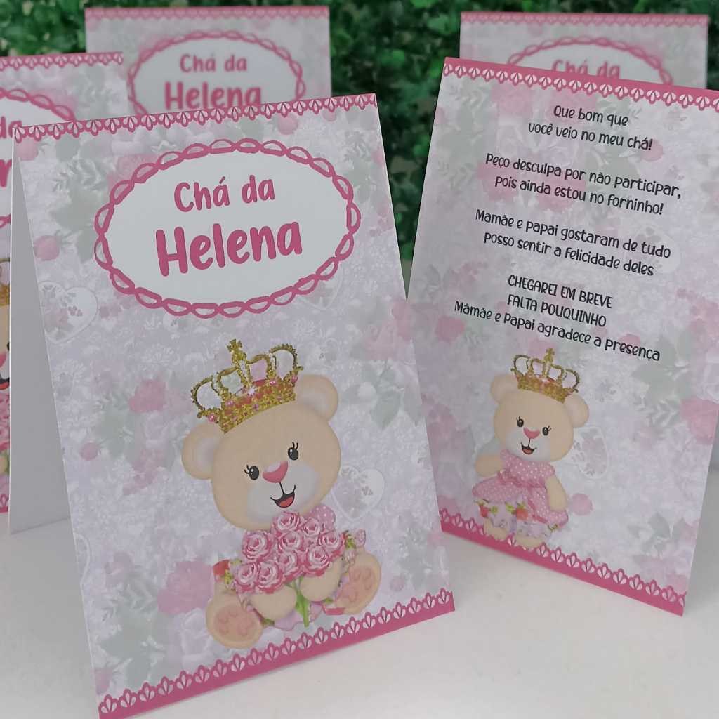 Centro de mesa personalizado plaquinha Chá de Bebê fraldas ursinha princesa Rosa realeza FAZEMOS TODOS OS TEMAS