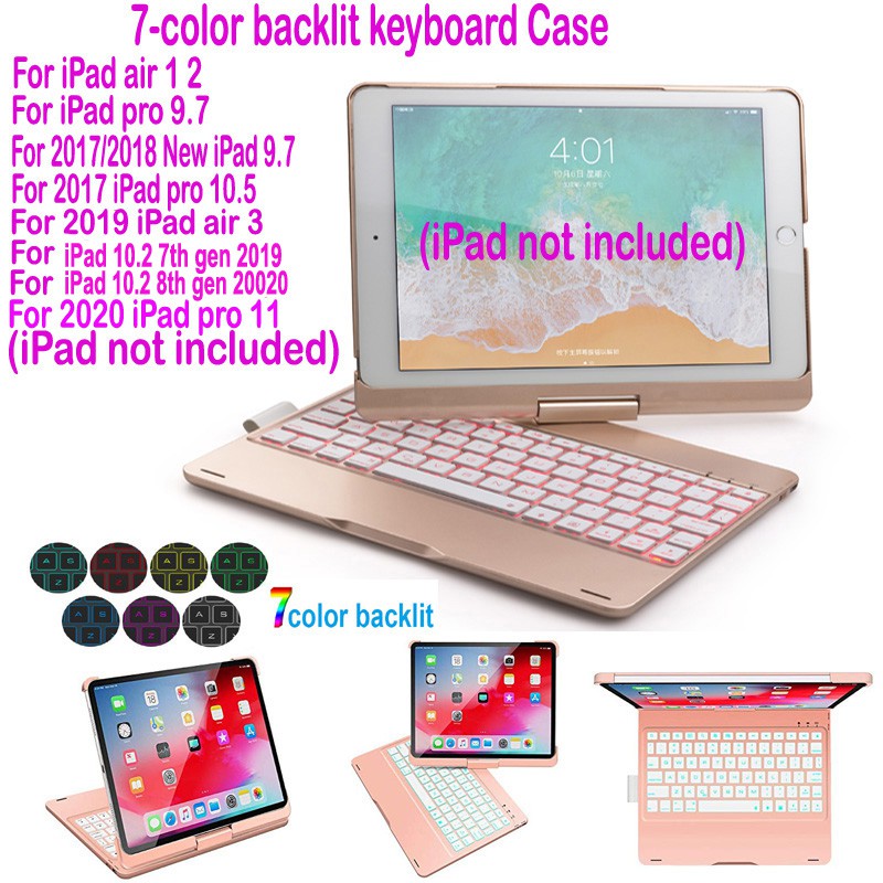 Capa De Teclado Com Rotação Em 360 Graus Para iPad 10.2/5th/6th/7th/8th/9th gen air 1/2/3/4/5 pro/9.7/10.5/11 De 7-color