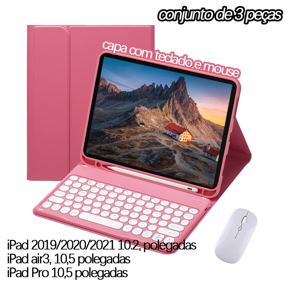 Capa Para iPad Geração 9/8/7 air3 pro Com Teclado E Mouse Redondo magnética Anti-queda 3 em 1