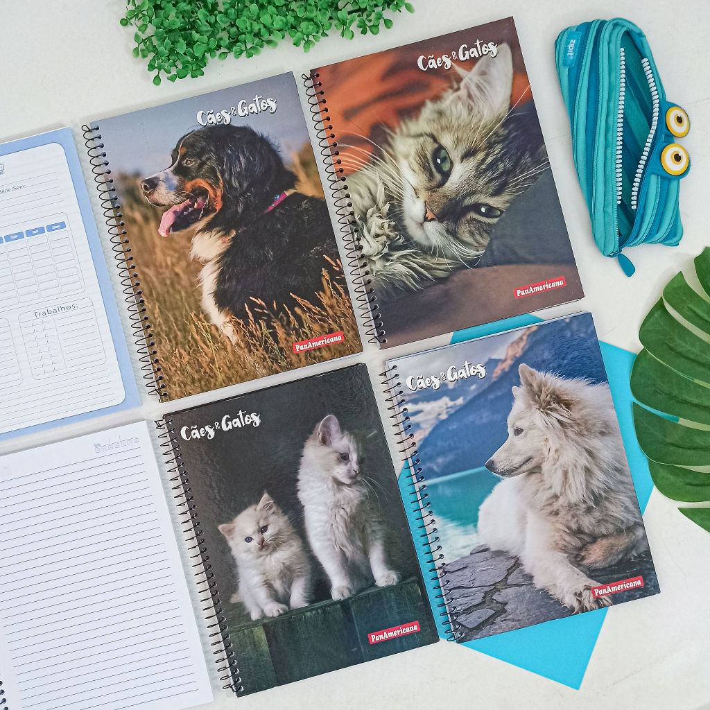 Caderno Universitário 20 x 27,5 cm (1, 10, 12 e 15 Matérias) Cães e Gatos - PanAmericana Caderno Colorido Grande | Papelaria | Material Escolar