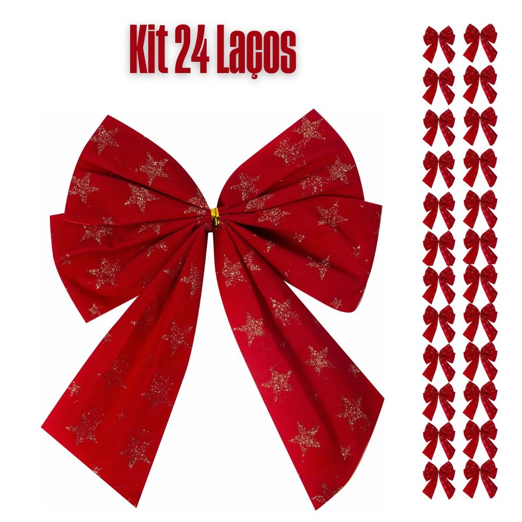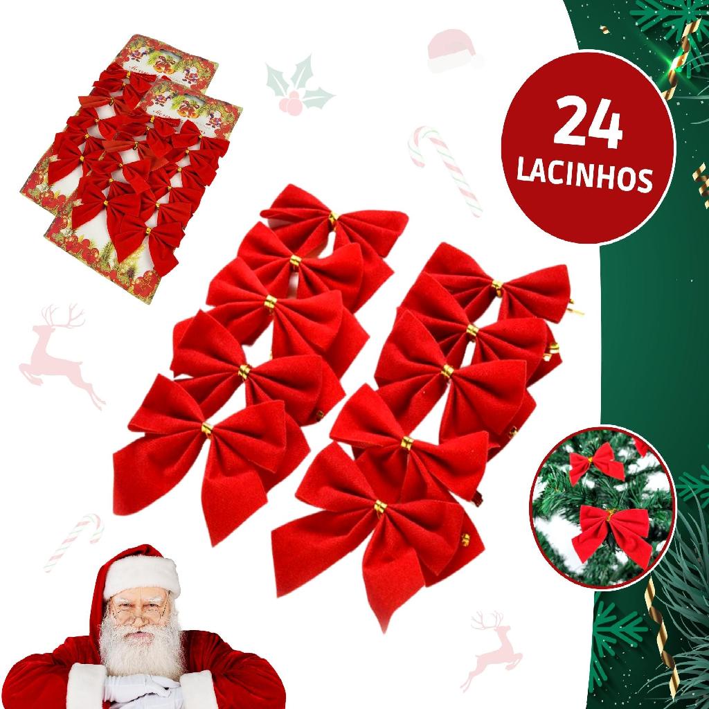 Kit 24 e 12 Laços De Natal Lacinho Decoração Enfeite Árvore Natal Vermelho