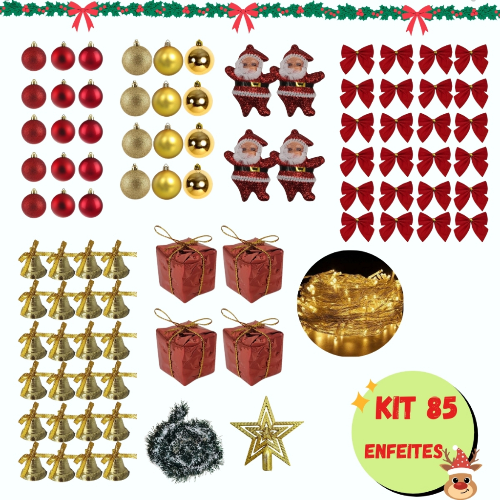 Kit 85 Bolas Decoração Arvore de Natal pendente bolinhas enfeites natalinos casa pisca pisca led