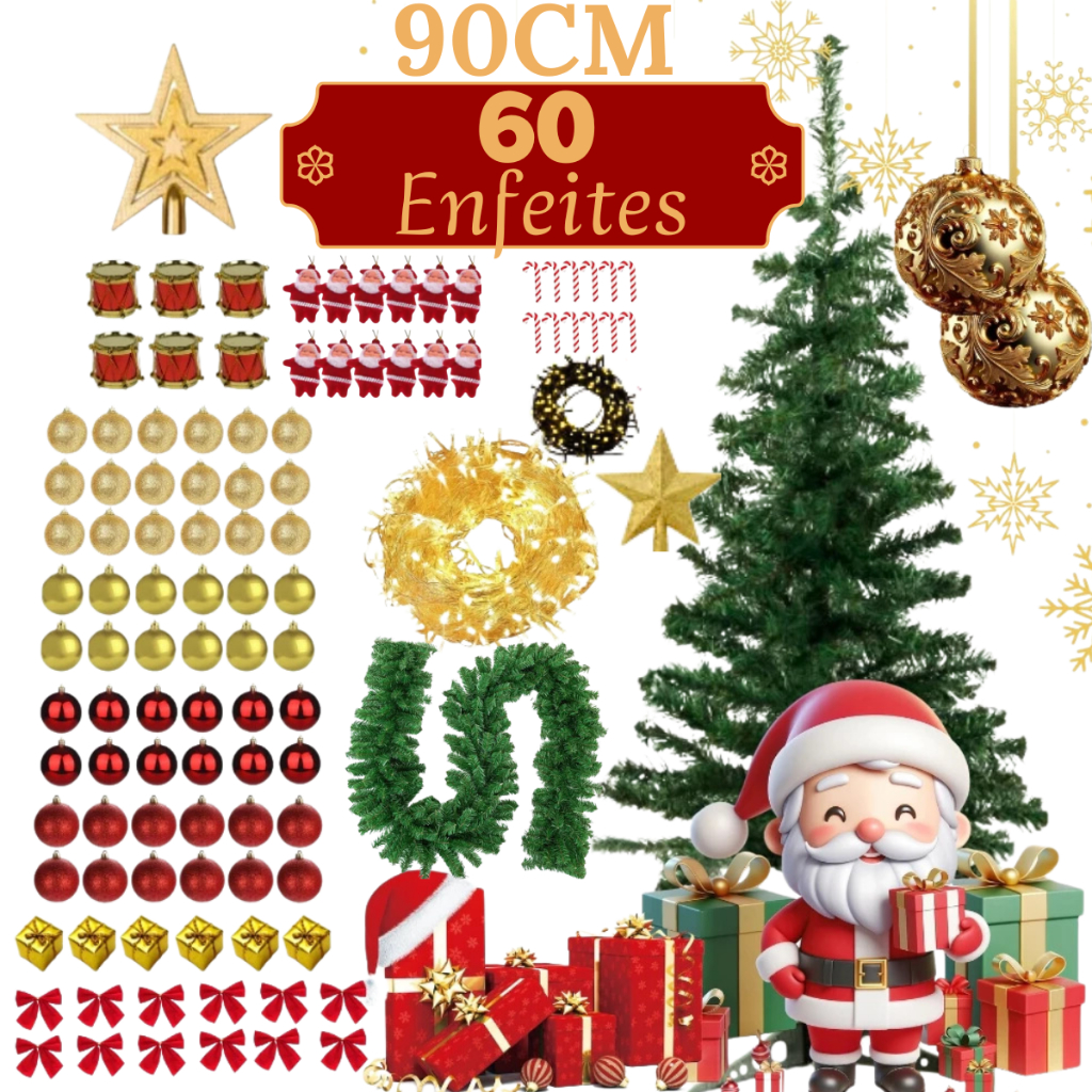 Kit Árvore de Natal DECORADA 90cm 90 galhos + 63 enfeites Pisca Led Bolas Estrela