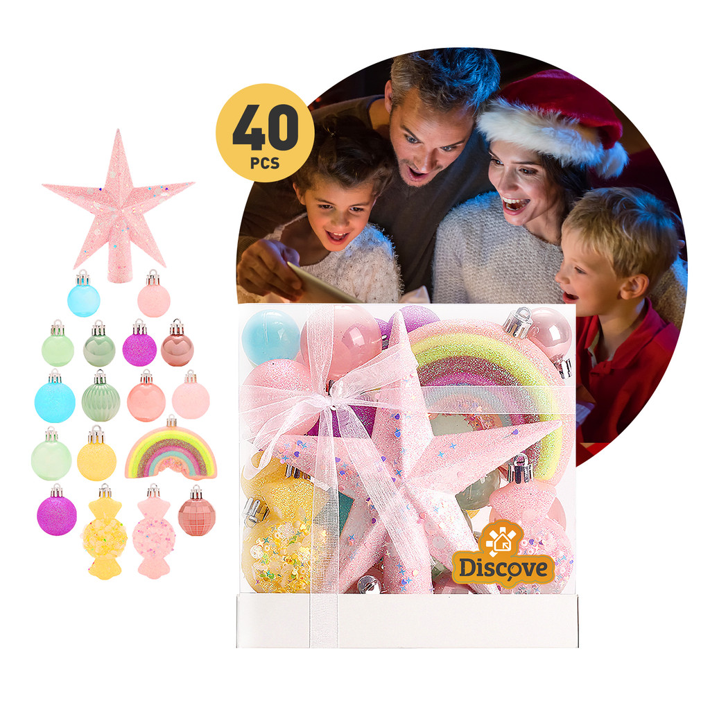 Kit 40 Bolas de enfeites de natal decoração 2024 árvore natalina arco-íris doces pisca pisca led