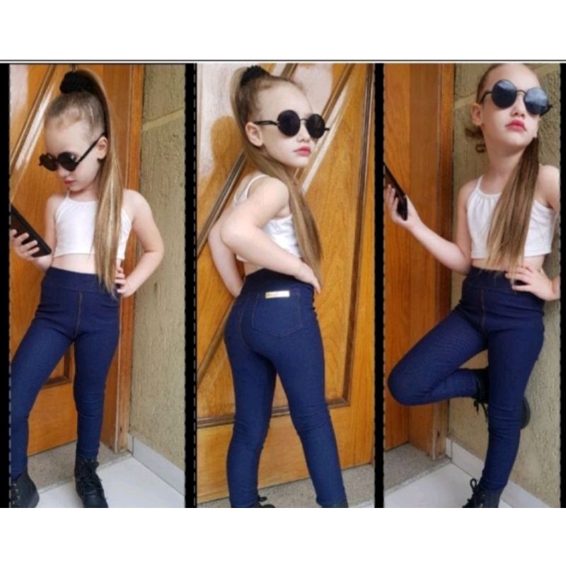 Calça legging Flare tipo bailarina azul tipo jeans infantil juvenil roupa moda menina para passeio e escolar