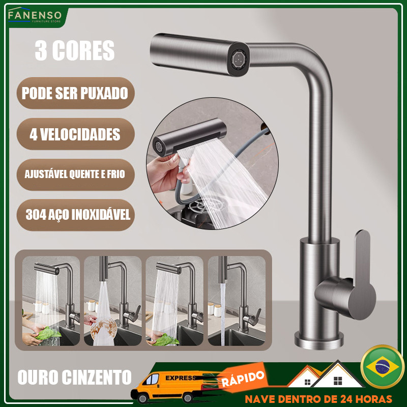 Torneira De Cozinha Cascata 360° Rotação 4 Em 1 Gourmet Funções EXTENSOR Bocal Alta Pressão Para Pia