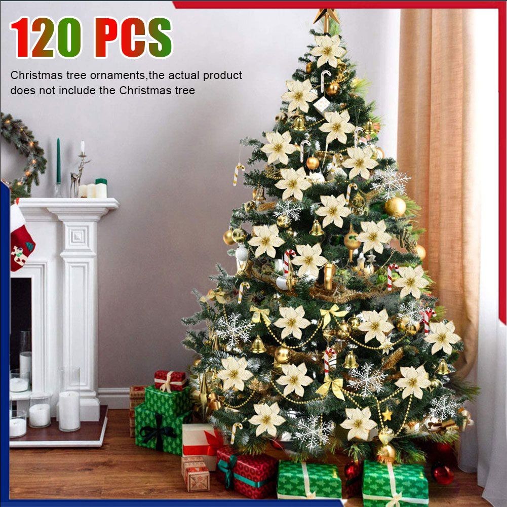 OUTDOOR 120 Pcs/conjunto Árvore De Natal Pendurado Enfeite Glitter Ouro Flor Conjuntos Pingente Para Casa Festa De