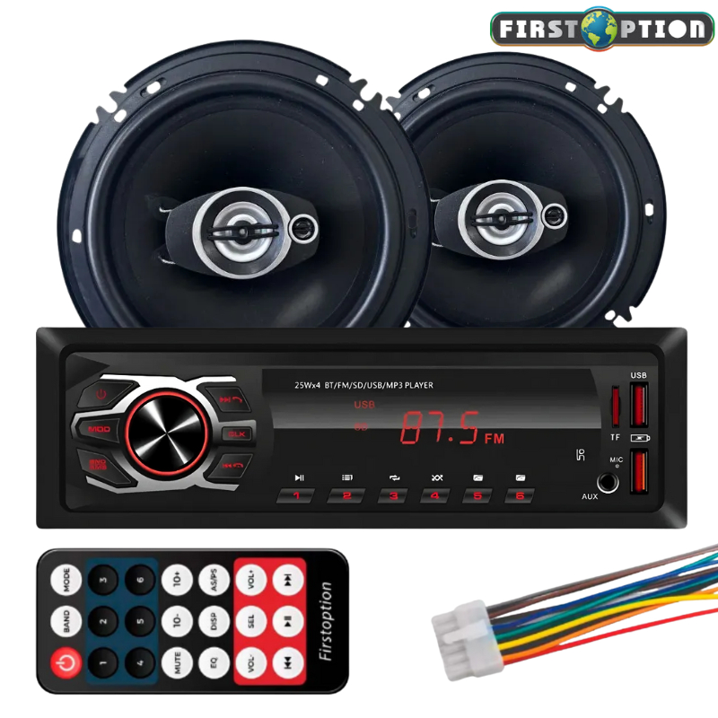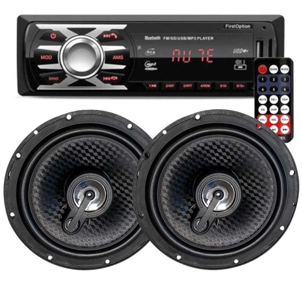 Som Automotivo First Option Mp3 Bluetooth Usb Aux Par Alto Falantes 6 Polegadas Portas Carro 110W