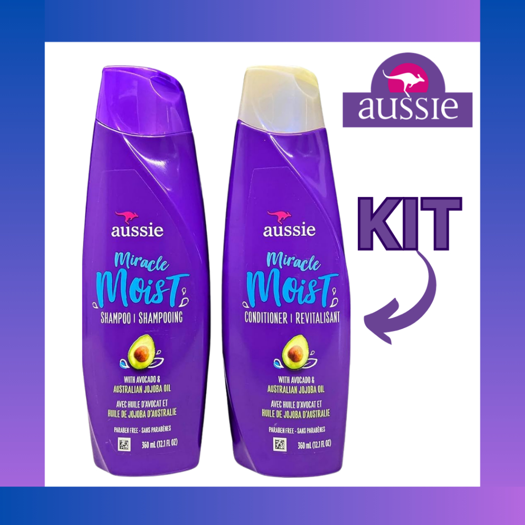 Kit Aussie Moist Shampoo 360ml + Condicionador 360ml + Creme 3 Minutos Milagrosos 236ml