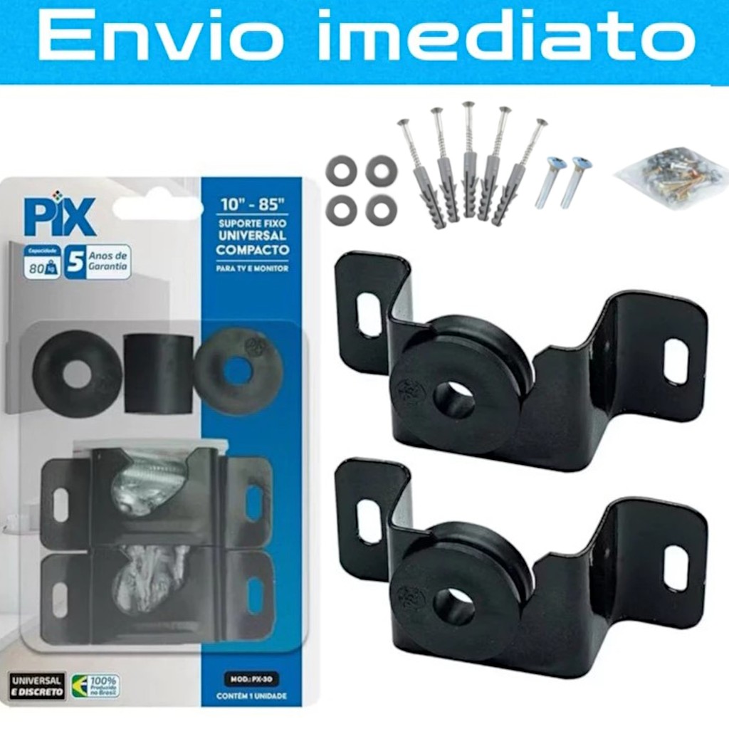 KIT Suporte Tv Fixo Universal LED / LCD - Original PIX Plasma 10 24 32 43 50 55 até 85 Polegadas para Parede ou Painel