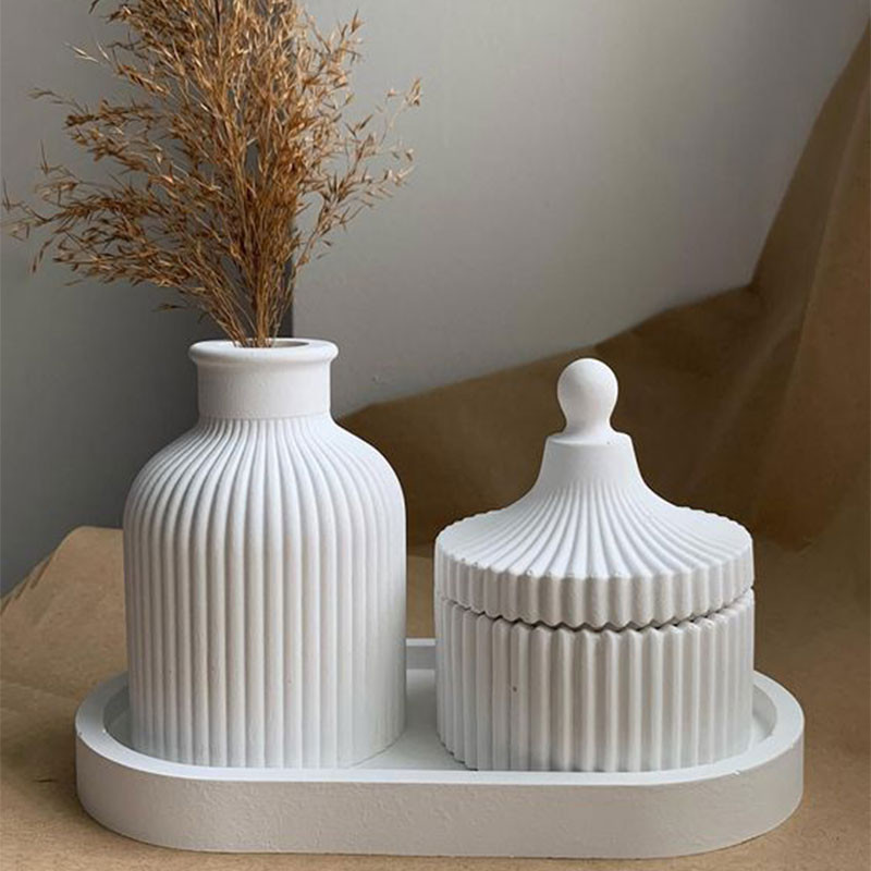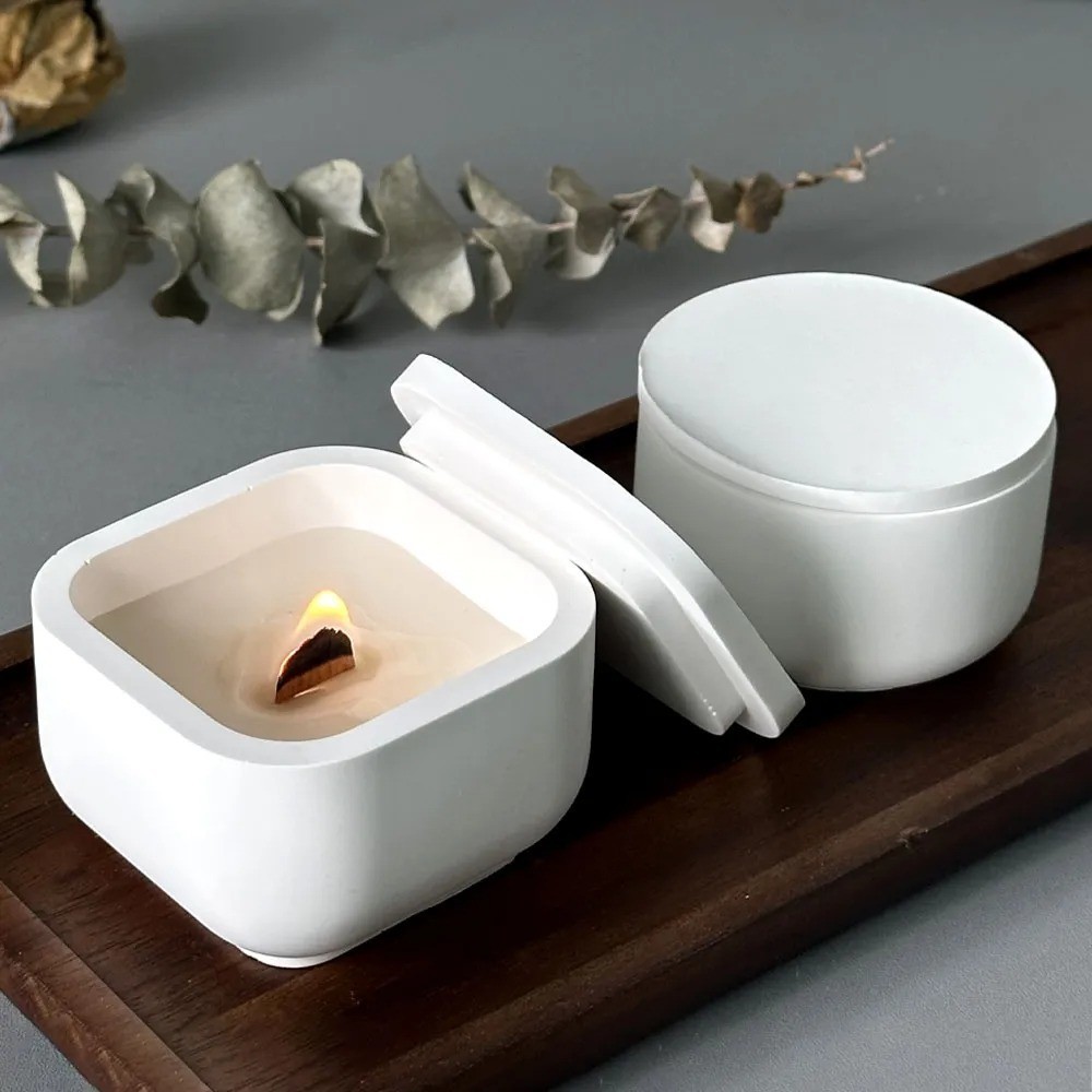 CHK Frasco De Vela Perfumado Siliocne Molde De Faça-Você-Mesmo Caixa De Armazenamento Redonda Moldes De Resina Epóxi Cimento Artesanal Em Pote Com Tampa Ferramentas Para Decoração De Casa