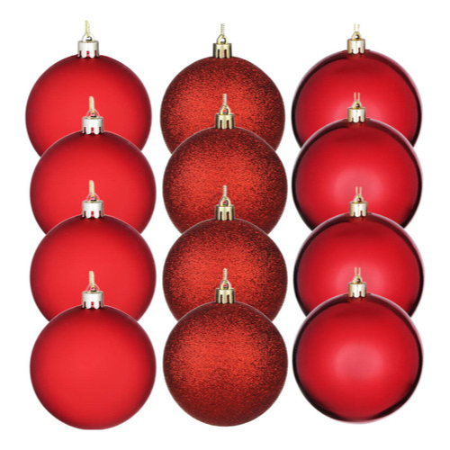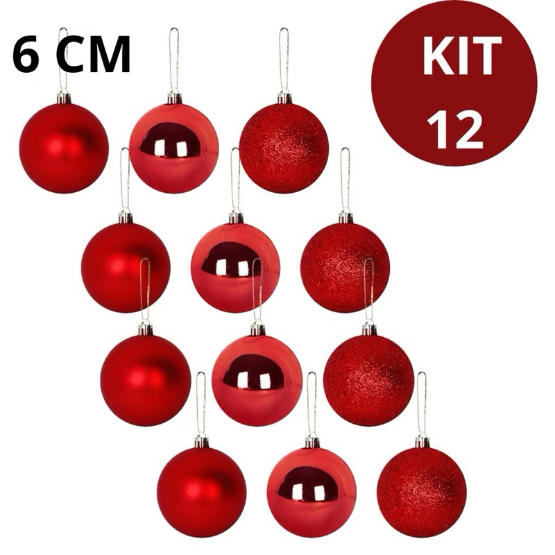 Kit 12 Bolinha Para Arvore De Natal Vermelho 6cm Enfeite Papai Noel Dourado Glitter