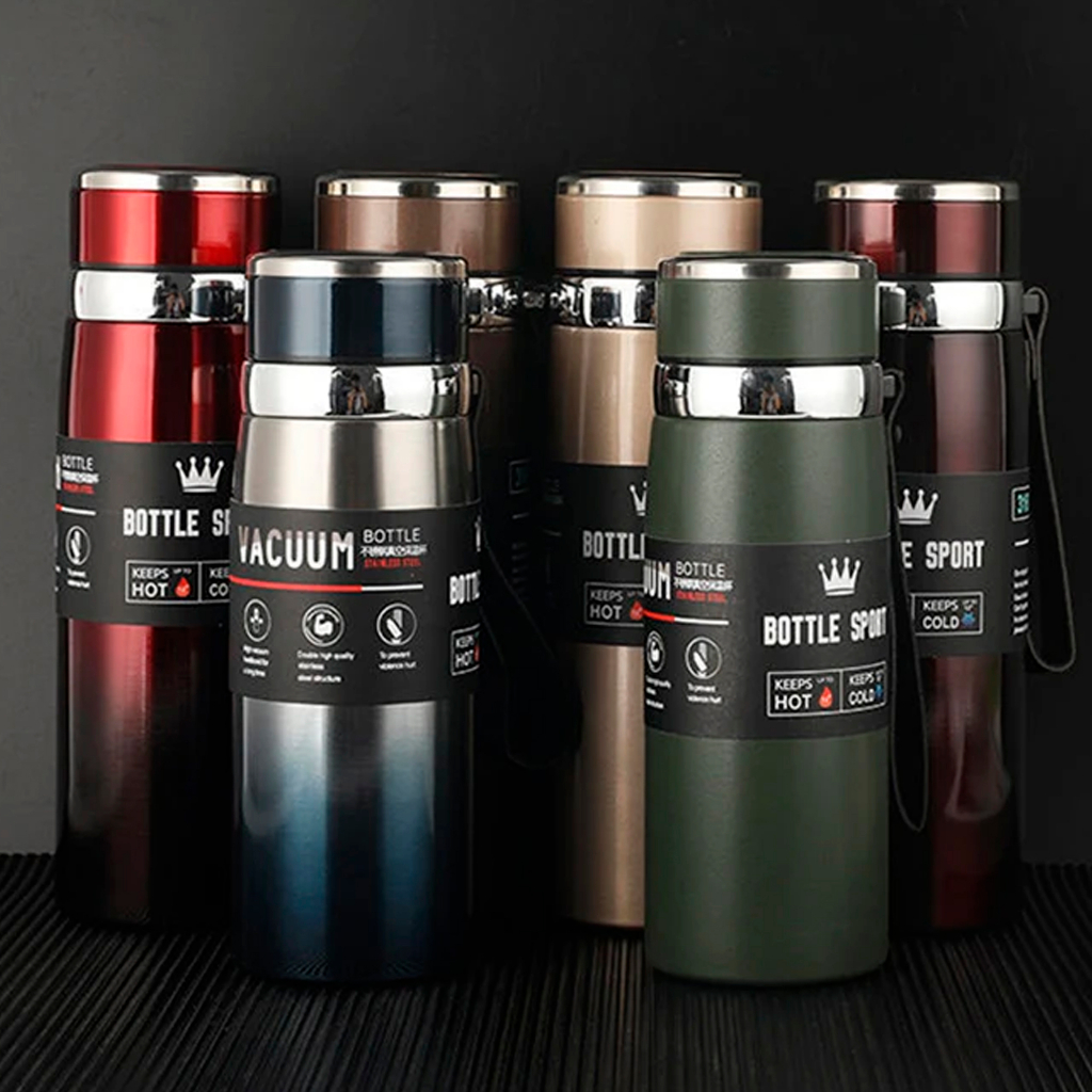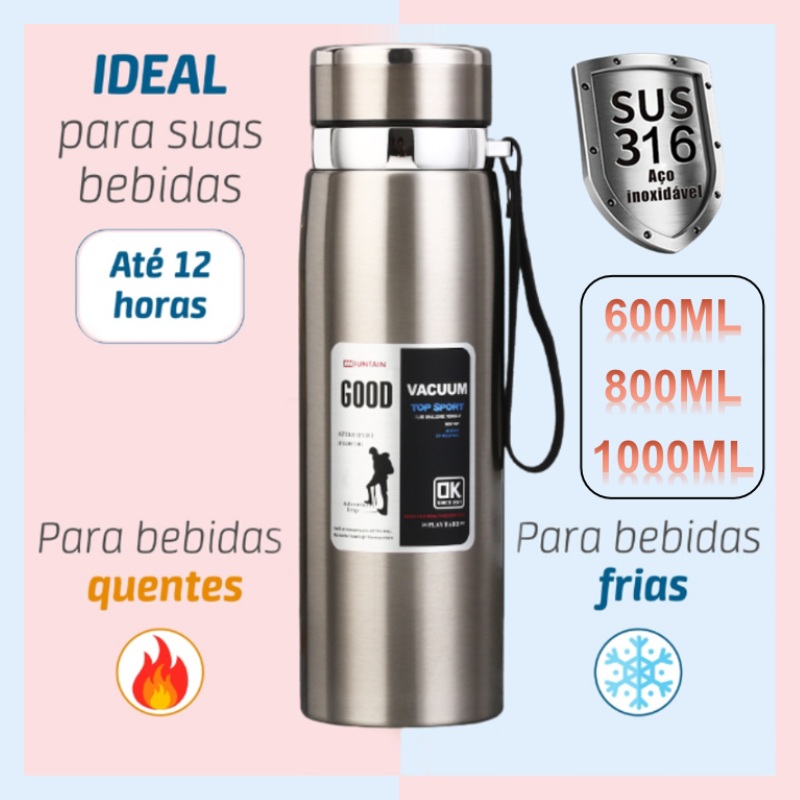 Garrafa Inox Térmica 600ML/800ML/1000ML De Água Café Parede Dupla Quente e Frio Com Alça - Entrega 24H