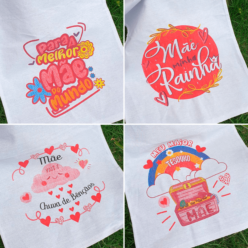 Kit com 4 Panos de Prato 100% Algodão Grande Estampado Dia das Mães 45cm x 72cm