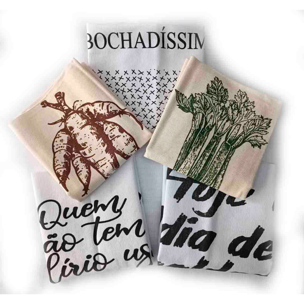 Kit 5 Panos de prato especiarias tempero cru frases engraçadas grande 45x72 cm estampado 100% Algodão moderno minimalista alta absorção