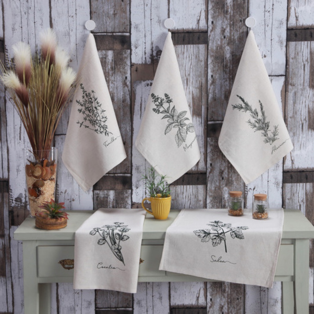 Kit 5 Panos de prato Especiarias Tempero cru grande rústico 45x72 cm estampado 100% Algodão moderno minimalista alta absorção cozinha