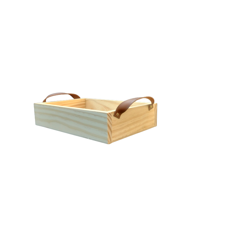 Bandeja alça de couro Pinus com alça de couro 7cm de altura