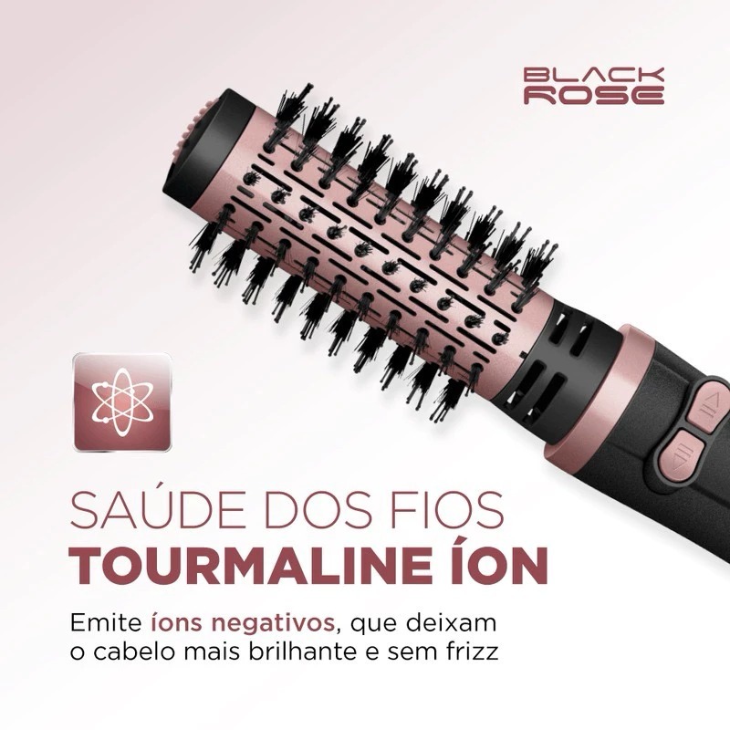 Escova Mondial Rotativa Modeladora Giratória 3 em 1 Black Rose ERB-01 Bivolt 127V/220V Com Garantia
