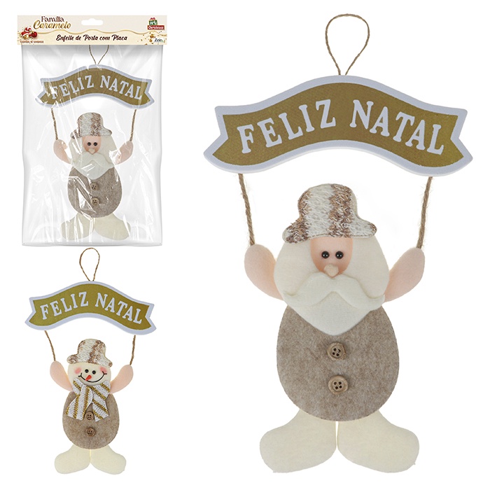 Enfeite Natalino com Placa mdf Feliz Natal Papai Noel e Boneco de Neve 31cm/PORTA JANELA