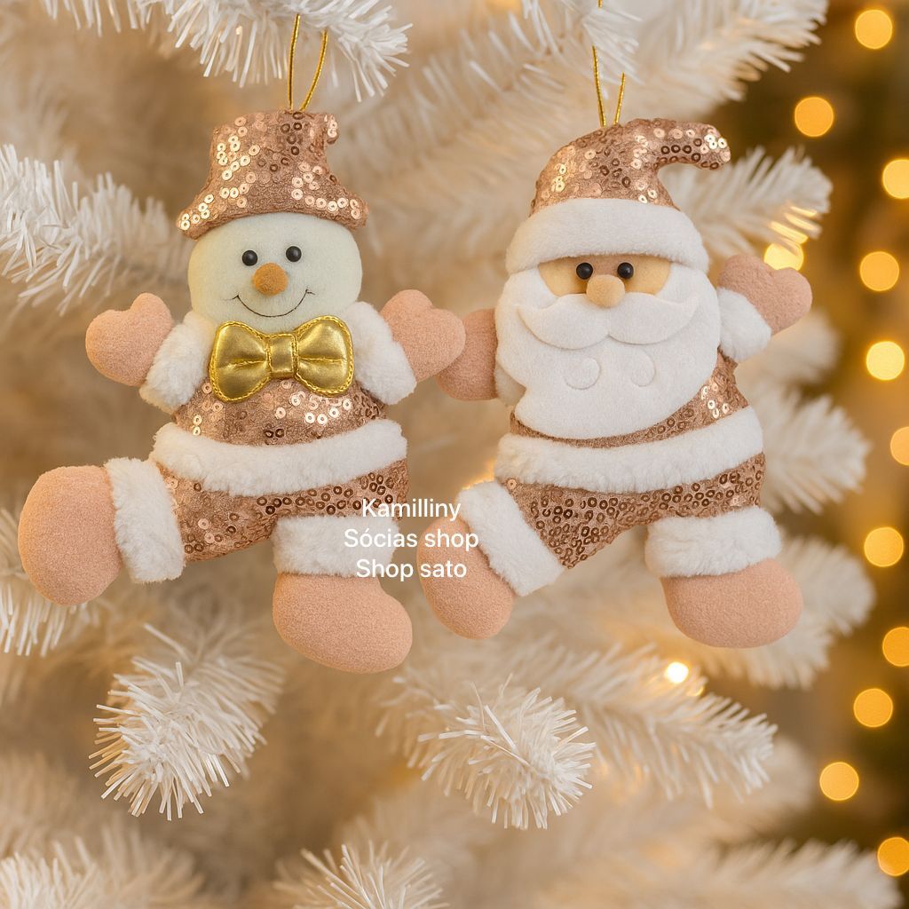 Enfeite Natalino Rosa Gold Papai Noel/ Boneco de neve Com Paete Decoração De Natal