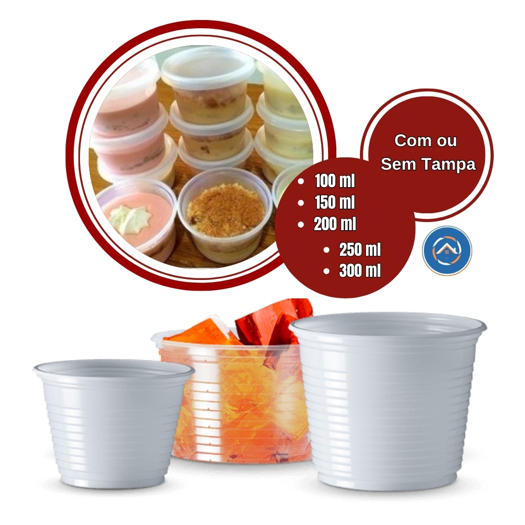 Pote plástico descartável redondo com tampa 140ml pp com 50 unidades bolo sorvete