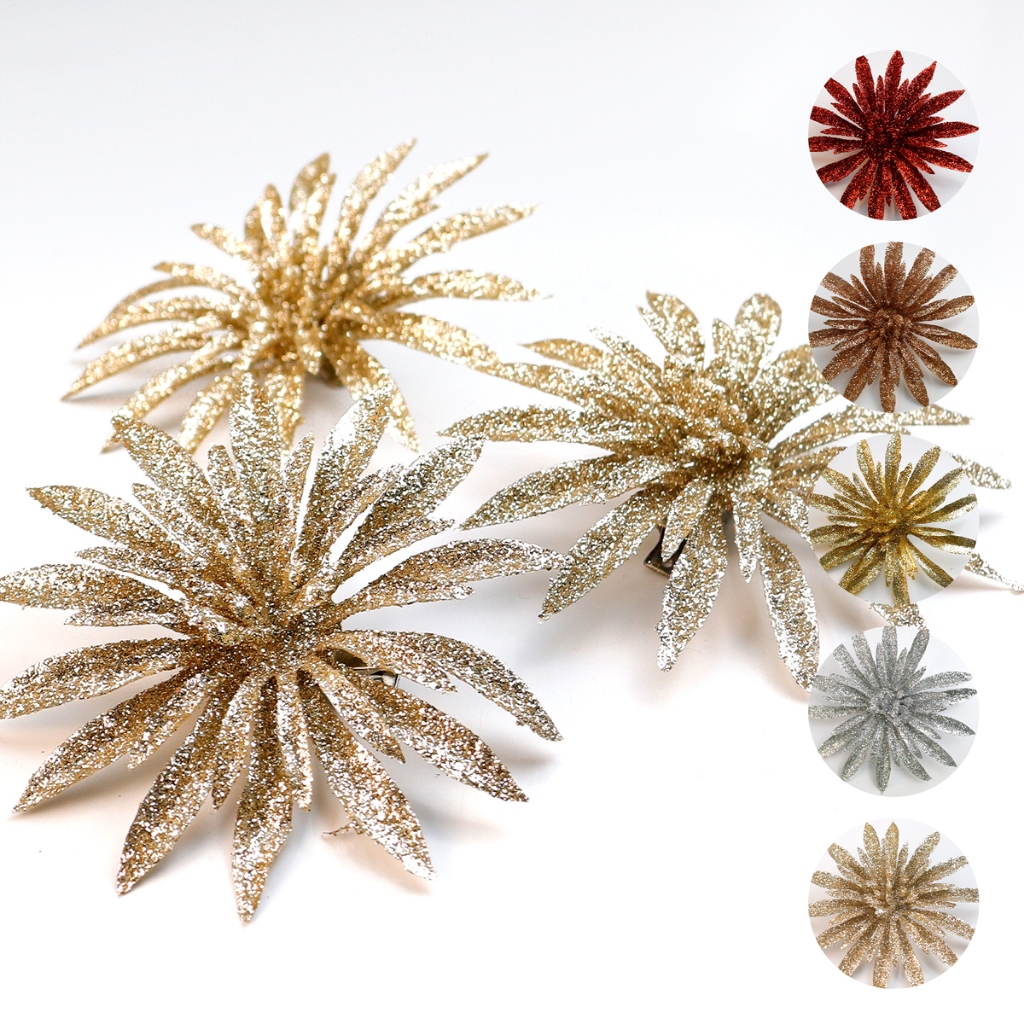 Flores Com Glitter 3 Peças 9,5cm com Presilha - Enfeite De Natal