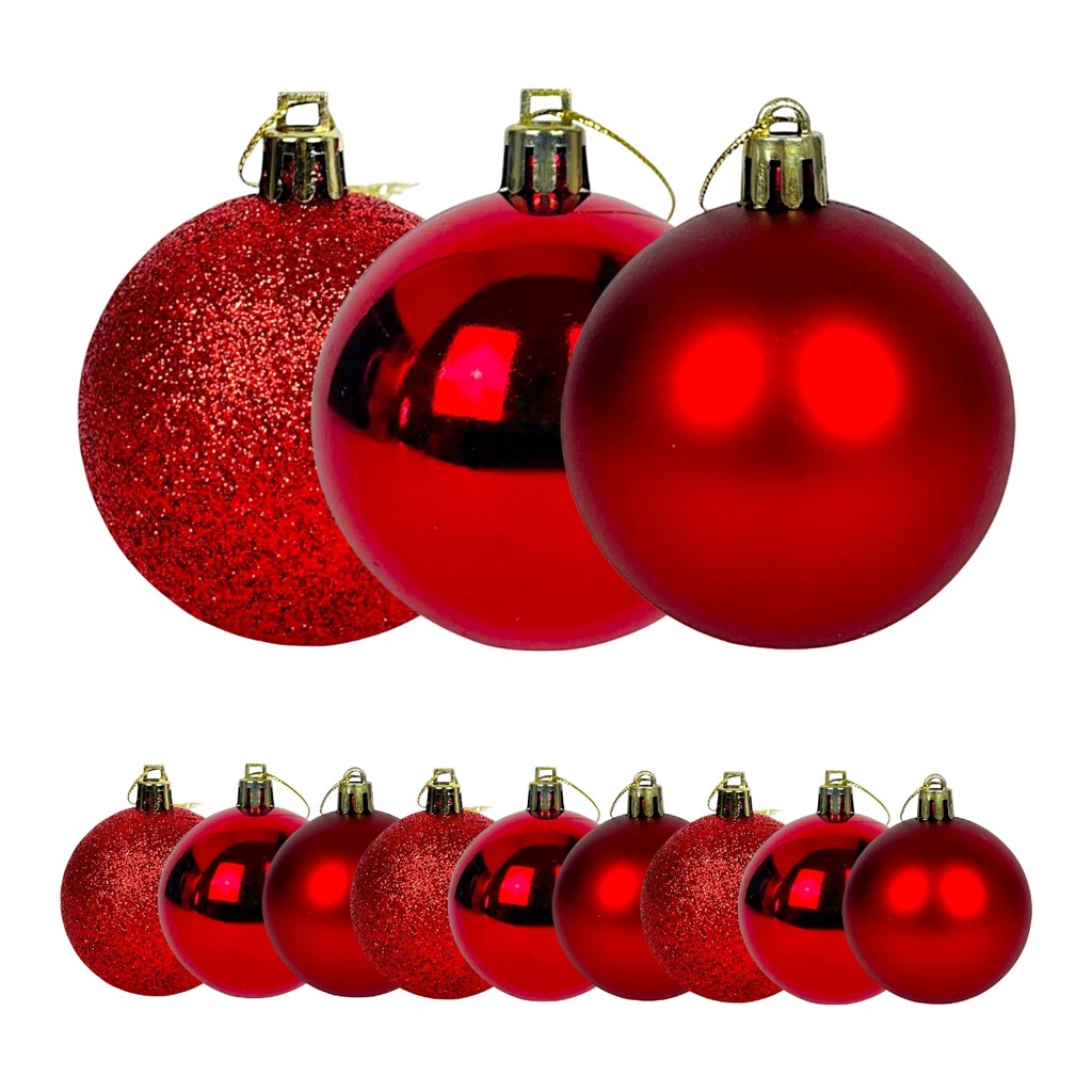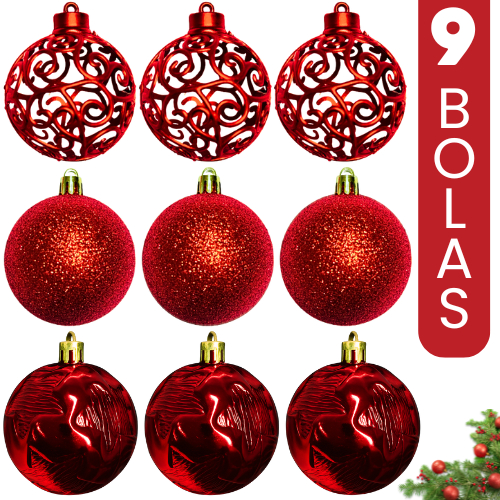 Kit 9 Bolinhas Natal 6cm Luxo Decorar Árvore Enfeite Natalino Vermelho Dourado Glitter Fosca Lisa Decoração