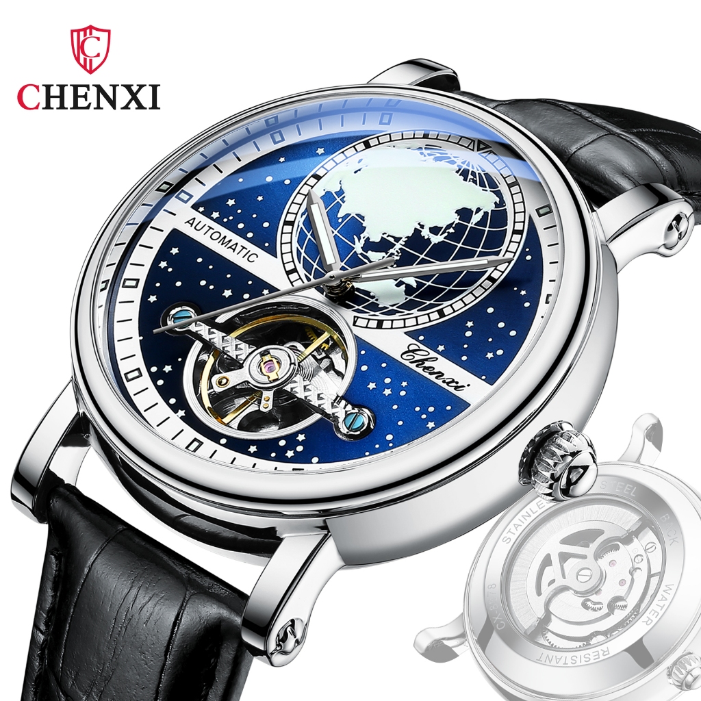 Marca CHENXI Relógio Mecânico Para Homens Movimento Automático Padrão De Mapa Global Relógios De Pulso De Esqueleto Luminoso Negócios De Luxo