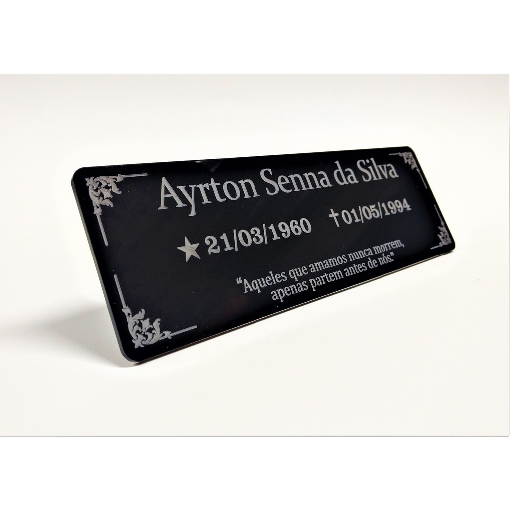 Placa para túmulo, jazigo, lápides, em Acrílico, gravadas a laser com alto brilho 20x10