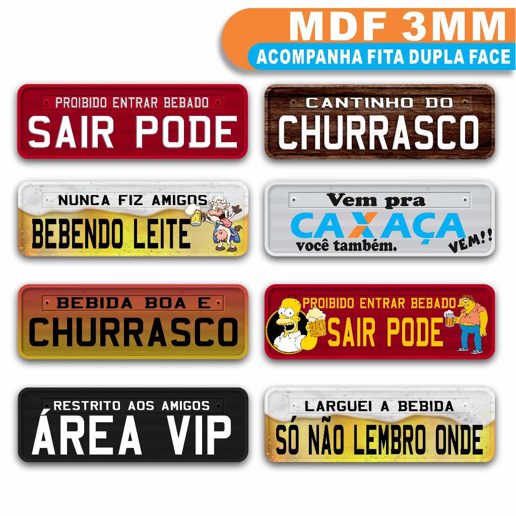 Placa Decocotativa de Parede Estilo Placa de Carro em MDF 40x13cm Frase para cantinho do churrasco, cerveja cortada a laser