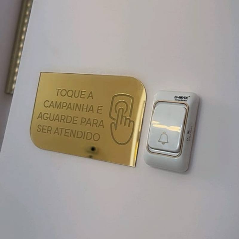 Toque a campainha para ser atendido placa em acrílico espelhado