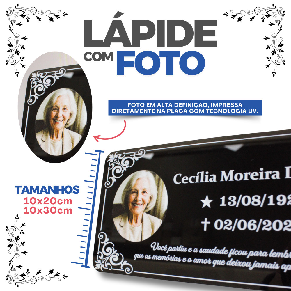 Placa para Túmulo Jazigo Lápide Cemitério Acrílico Personalizado Foto Homenagem Mensagem