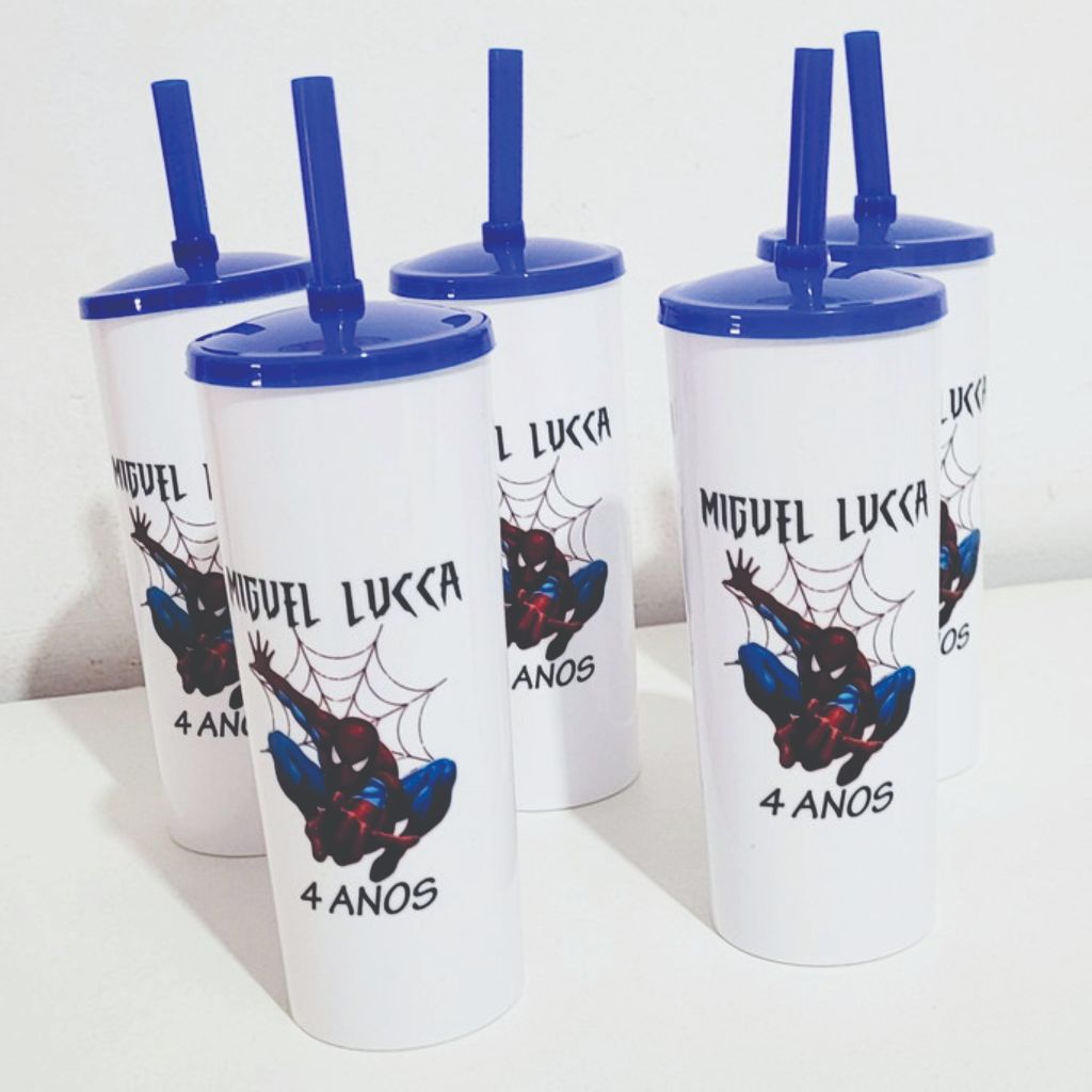 Kit 30 Copos Long Drink com Tampa e Canudo 350ml Personalizado Evento Festa Aniversário
