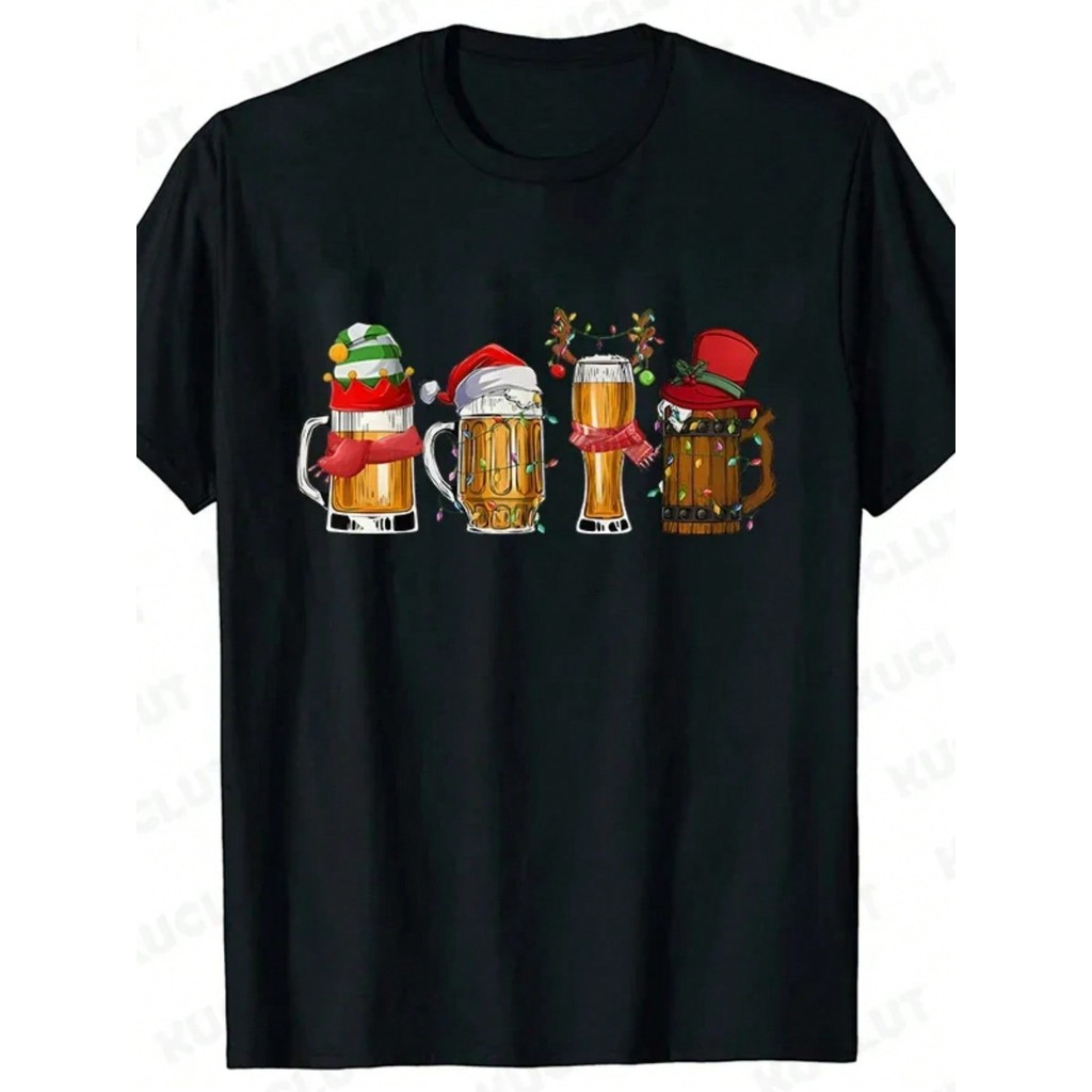 Camiseta 100% Algodão Premium Casual Lançamento 2024 Feliz Natal Cervejas Envio imediato