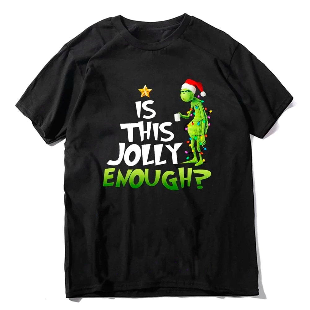 Camisa Camiseta Unissex Grinch Natal Is This Jolly Enough Luzes de Natal