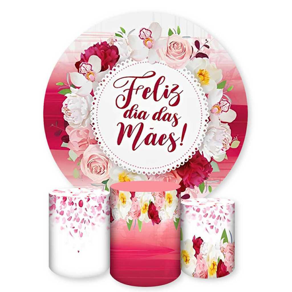 Kit Capas Painel Redondo E Capas De Cilindro Sublimados Decoração Dia das Mães Festa