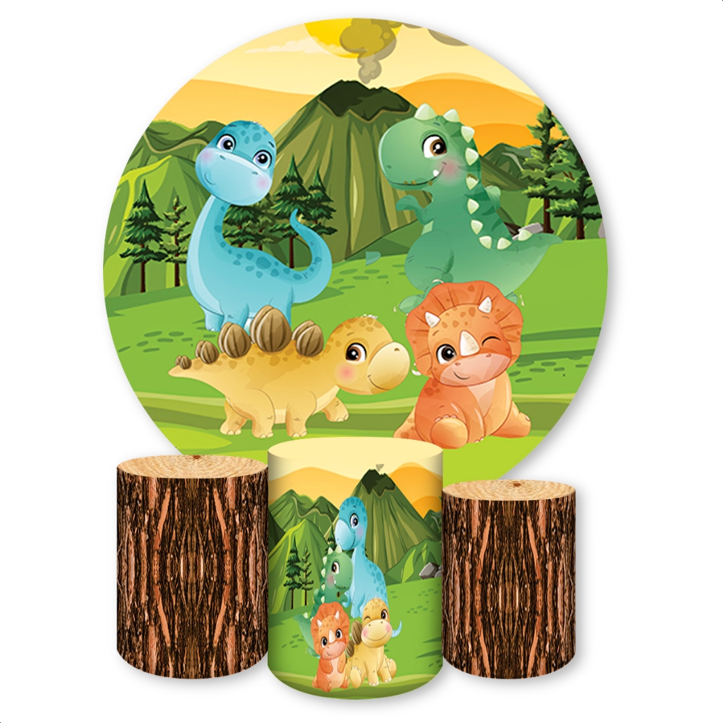 Kit Painel Redondo + Capas de Cilindro Sublimados Para Festa Tema Dino Baby