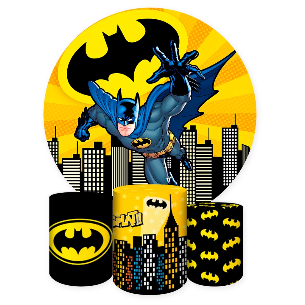 Kit Painel Redondo + Capas de Cilindro Sublimados Para Festa Tema Batman