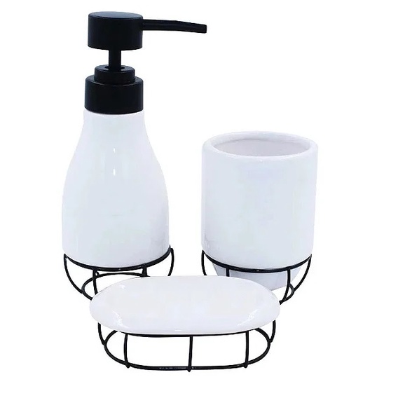 Kit 3 Peças Para Banheiro Cerâmica Porta sabonete líquido Porta escovas Saboneteira