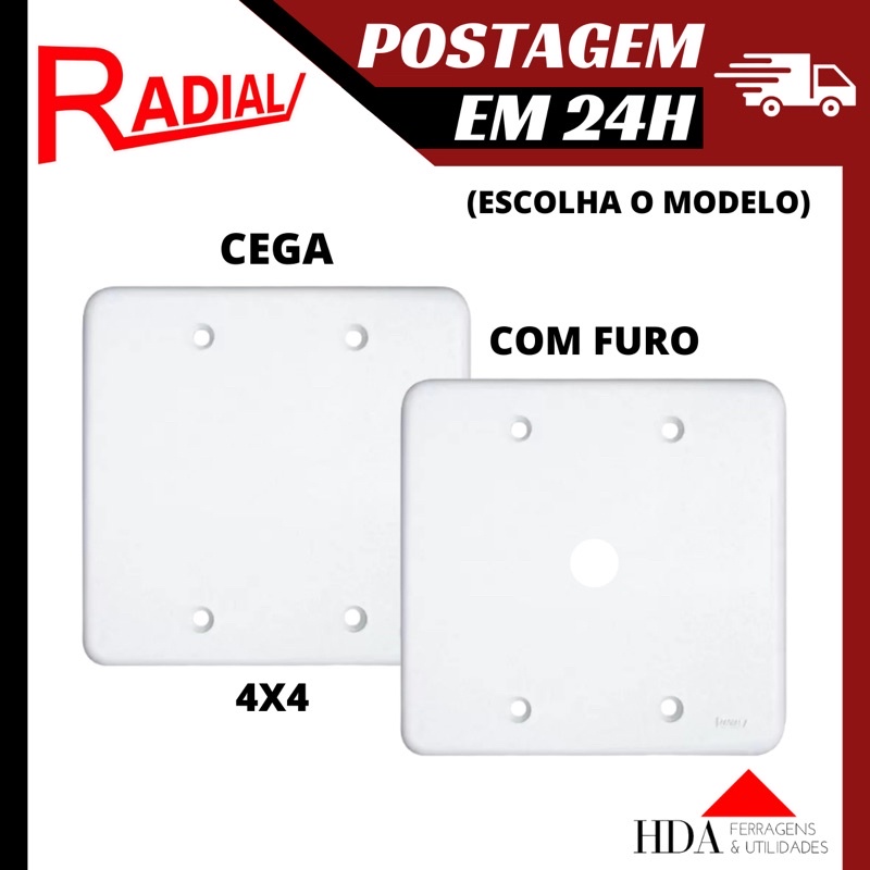 Placa Espelho Tampa 4x4 Cega ou Com Furo Saída de Fios (Escolha o Modelo) Pollar - Radial