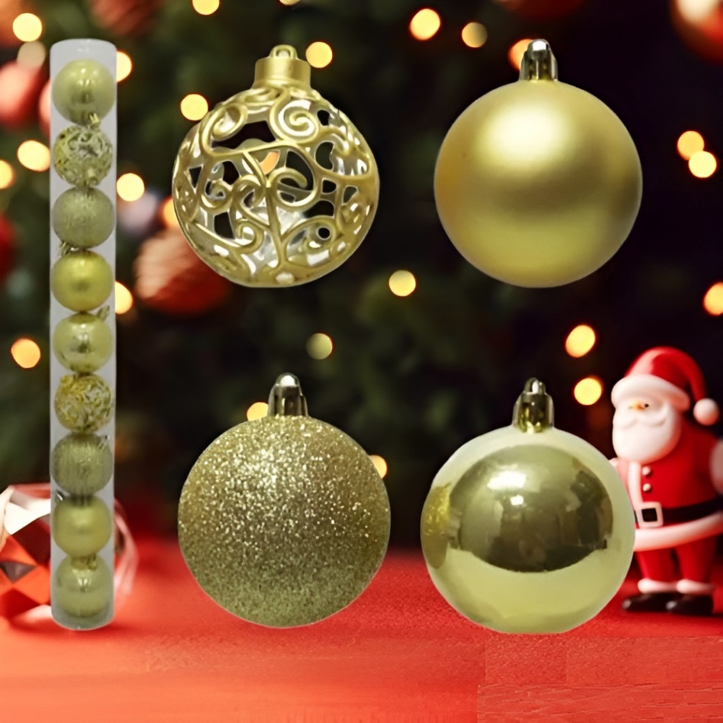 BOLA DE NATAL MISTA FOSCA / LISA / GLITTER CHAMPANHE COM 9 PECAS 6CM DE Ø