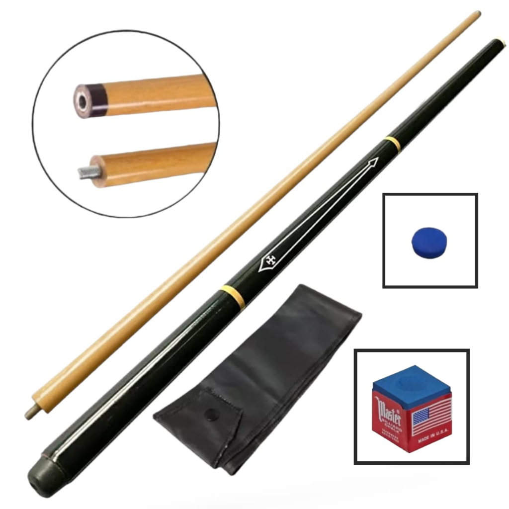 Kit Taco Sinuca Bilhar Rosca Cruz de Malta Desmontavel Bipartido 1/2 com Capa Giz Master Vermelho Azul Original e Sola de Couro 11mm Profissional