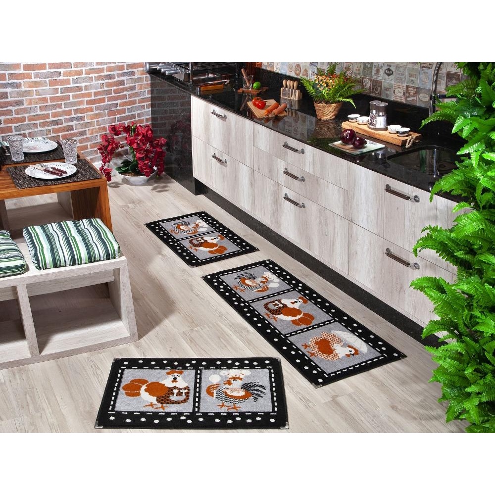 Jogo de Tapete Cozinha Kit 3 Peças Passadeira 1,20m Galinha Lancer