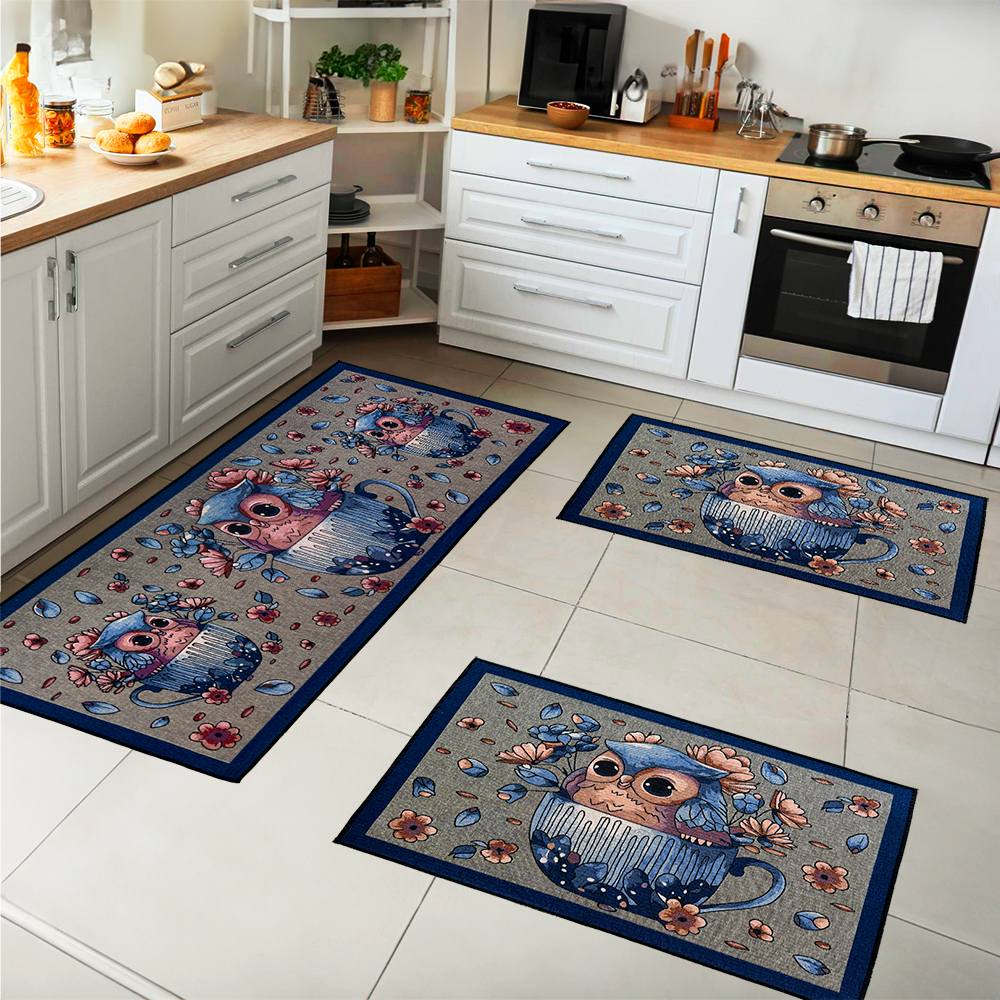 Kit De Tapete Para cozinha Antiderrapante 3 Pçs 1 Passadeira e 2 Tapetes