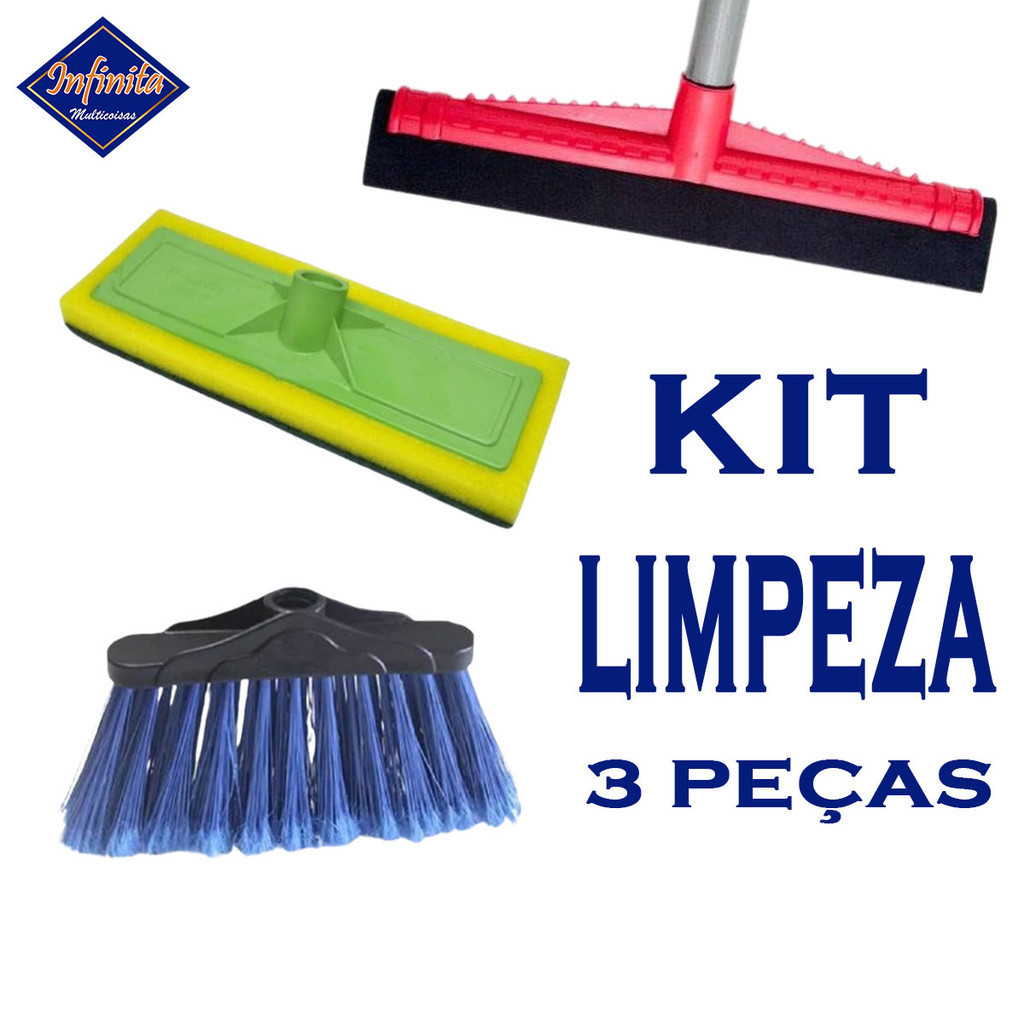 Kit Limpeza rodo duplo vassoura lava piso azulejo esfregão faxina sem cabo