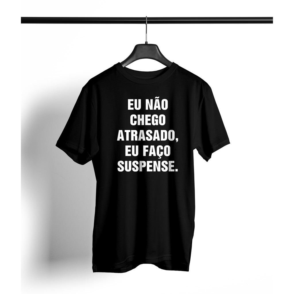 Camiseta camisa estampa Eu não chego atrasado, eu faço suspense. basica unissex manga curta