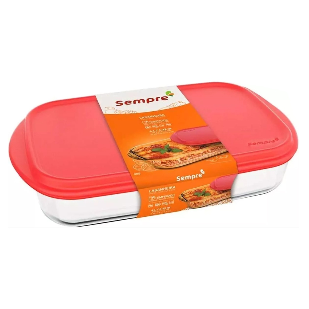Forma de Vidro com Tampa Assadeira de 4 litros Lasanheira Grande Travessa Sempre De Vidro Temperado