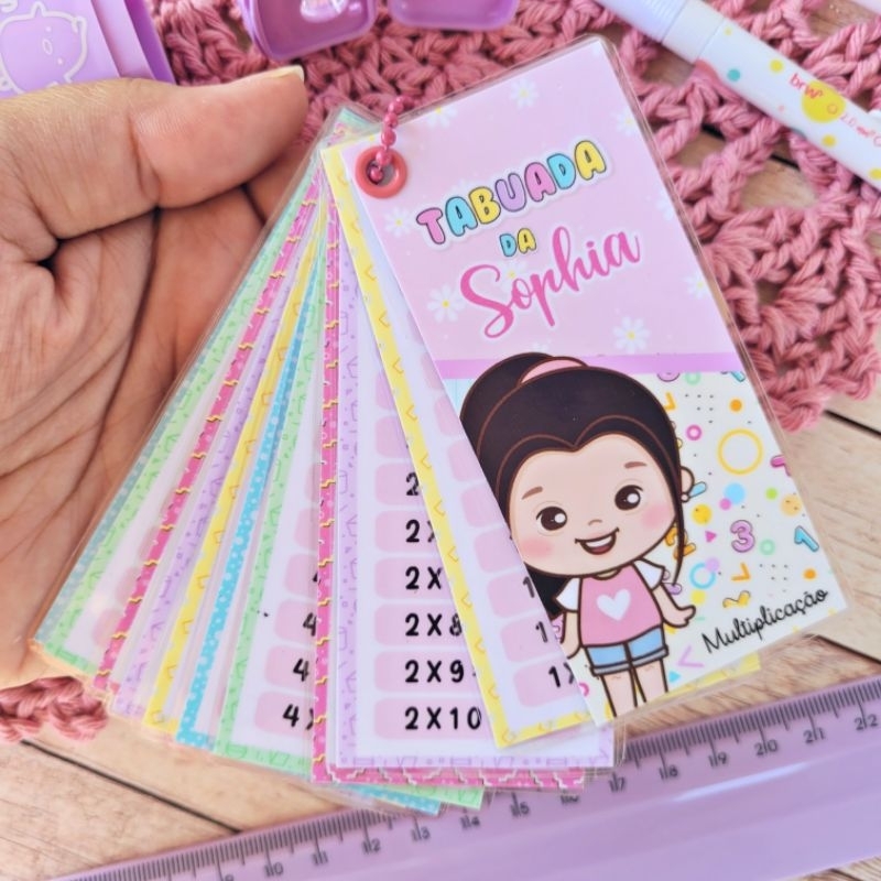 Tabuada de Multiplicação do 1 ao 10 com Chaveiro Personalizada e Plastificada - Todos os Temas Volta as Aulas LEIA A DESCRIÇÃO COMPLETA