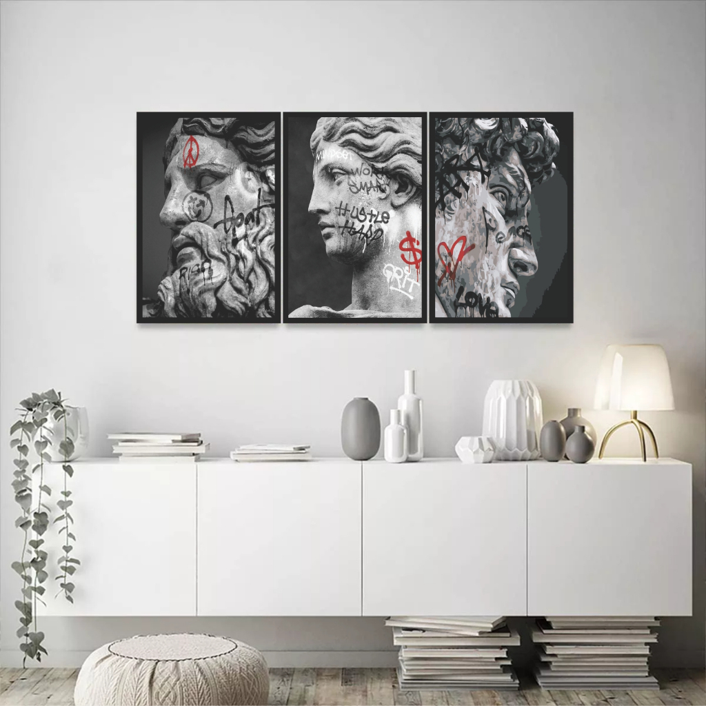 QUADRO DECORATIVO ESTATUA GREGA COM GRAFITE 60 X 40 CM